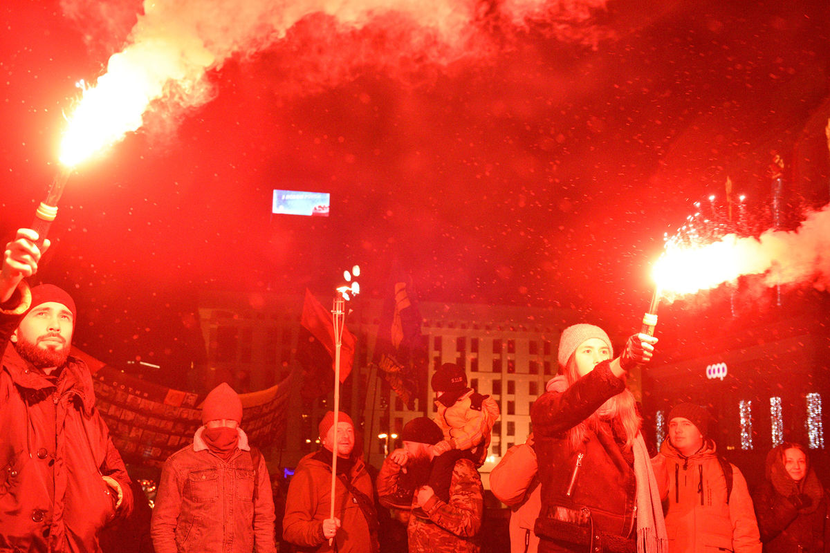 В городе Львове на западе Украины сторонники националиста Степана Бандеры провели факельное шествие. Об этом сообщается в Telegram-канале издания «Страна.ua».