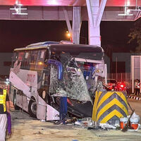 По информации Telegram-канала, автобус с 37 пассажирами врезался в автомобиль в Toyota Fortuner. После столкновения автобус отлетел в бетонное ограждение.