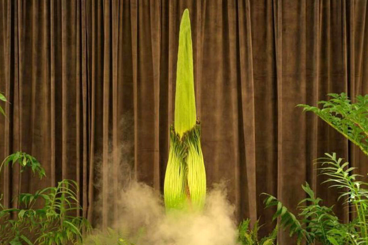 «Титан Арум», считающийся самым вонючим цветком в мире, можно найти только в тропических лесах Суматры (Индонезия). Растение достигает трех метров в высоту и весит до 150 килограммов. В дикой природе оно находится под угрозой исчезновения из-за вырубки лесов и деградации земель.