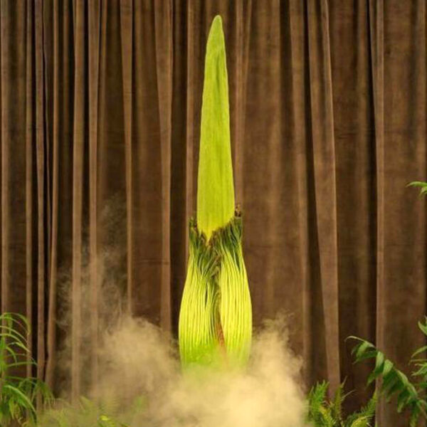 Во время цветения «Титан Арум» покажет бордовую или малиновую «юбку» вокруг своего початка, который представляет собой большой колос в сердцевине растения.