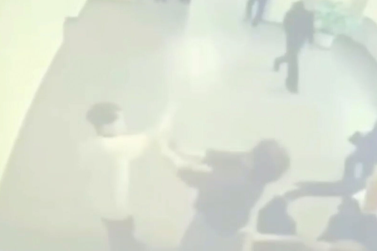 Все произошло в одном из образовательных учреждений города. На кадрах видно, как мальчик снимает с себя джемпер и несколько раз бьет им учительницу, толкает ее, а затем с размаху бьет ее рукой по лицу.