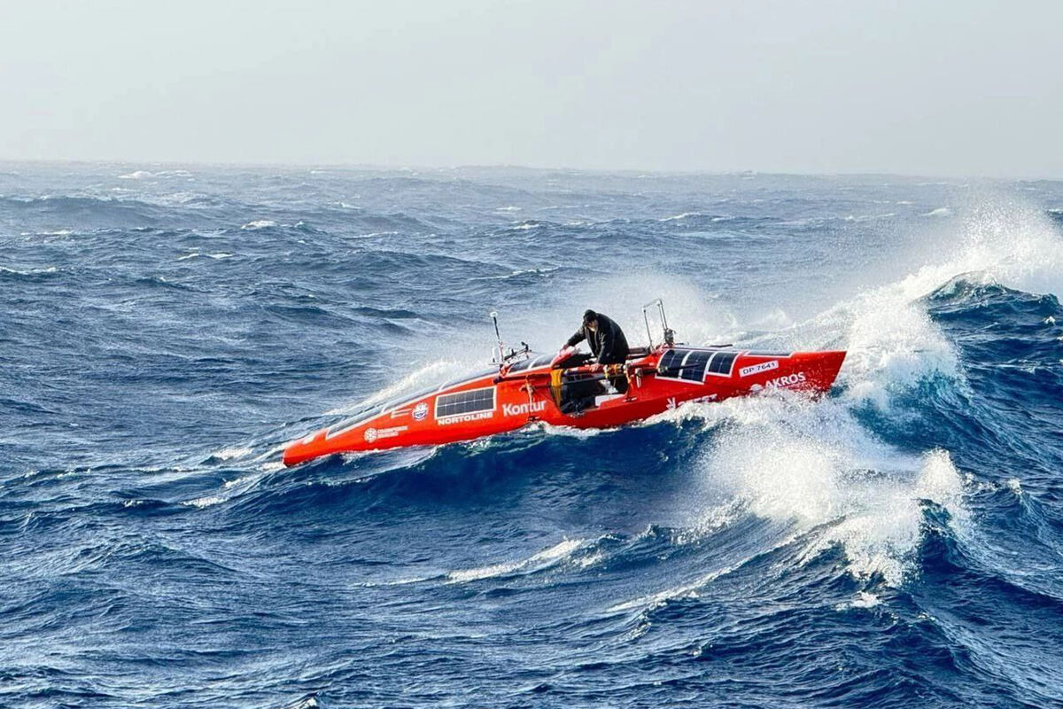 В канале отмечается, что он пересек Южную Атлантику по самому сложному и опасному маршруту в «неистовых пятидесятых» и «ревущих сороковых» широтах. На это путешественнику потребовалось 68 суток.