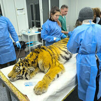 Соглано результатам проведенного обследования, животному 1,5 года. Оно весит 74 кг, что несколько ниже нормы. Специалисты центра «Тигр» (занимается спасением и выпуском на волю амурских тигров и других диких животных) считают, что тигрица может быть сестрой животного, отловленного в прошлом декабре в поселке Эбергард.