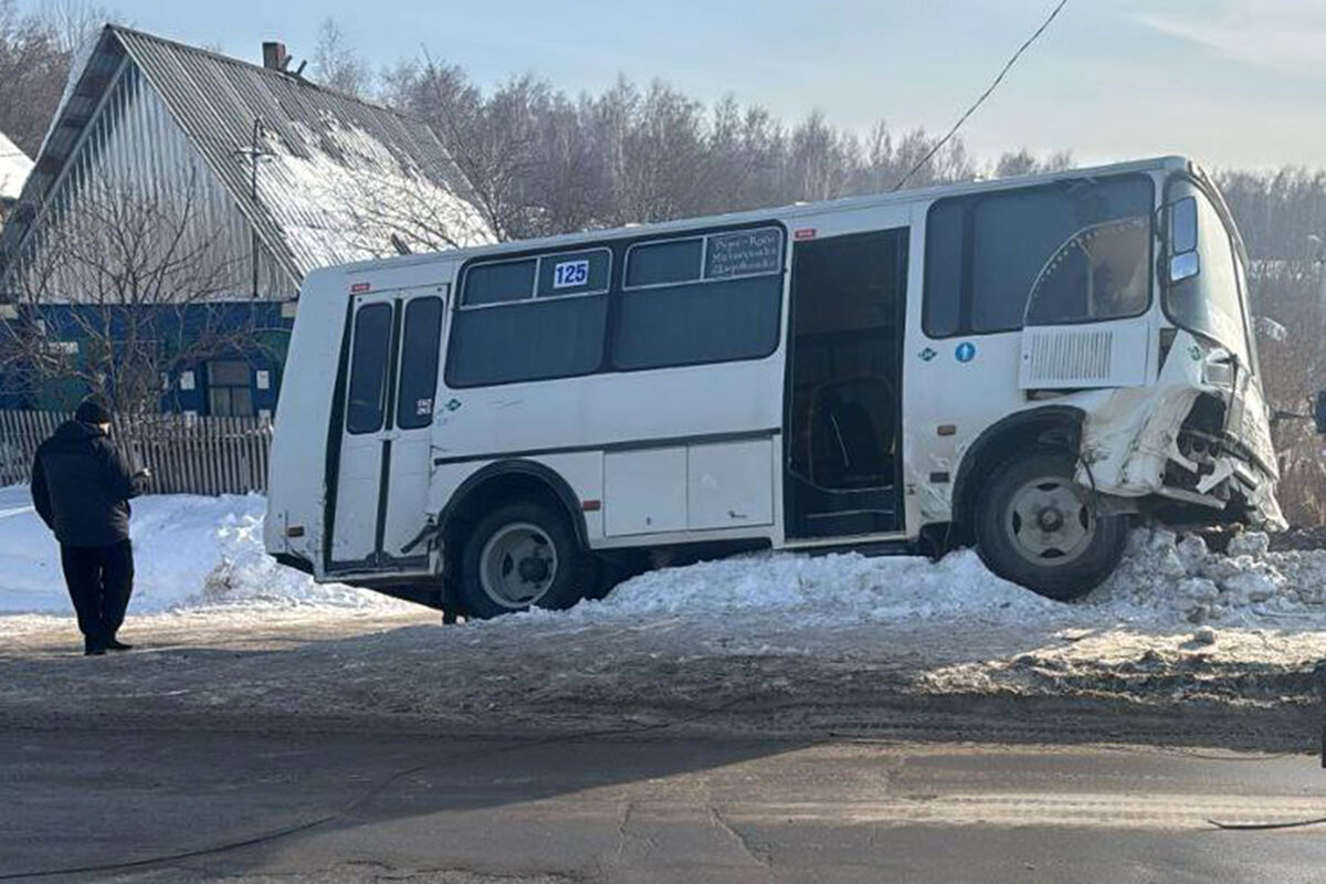Инцидент произошел в городе Искитим, на улице Гоголя. По предварительным данным, автобус столкнулся с трактором, который следовал в попутном направлении, после чего врезался в столб.
