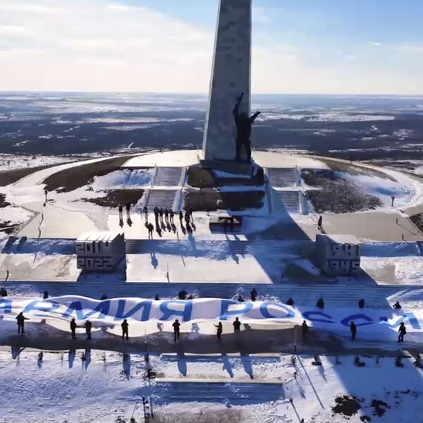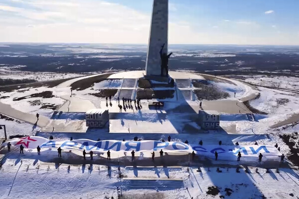 Возле мемориала «Саур-Могила» в Донецкой народной республике (ДНР) растянули 50-метровое знамя российской армии. Об этом в своем Telegram-канале рассказал министр молодежной политики ДНР Кирилл Макаров.