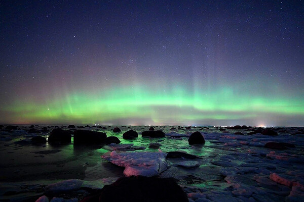 Так, разноцветные переливы в небе сфотографировали вблизи Екатеринбурга и в Ирбите. Также северное сияние сняли в Шепелево, над озером Раздолинским в Сосново, в поселке Лебяжье в Ленинградской области, в Алтайском крае.