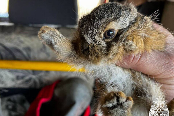 Сотрудники МЧС спасли зайчонка из горящей травы в Кемеровской области. Об этом сообщается в Telegram-канале ведомства.