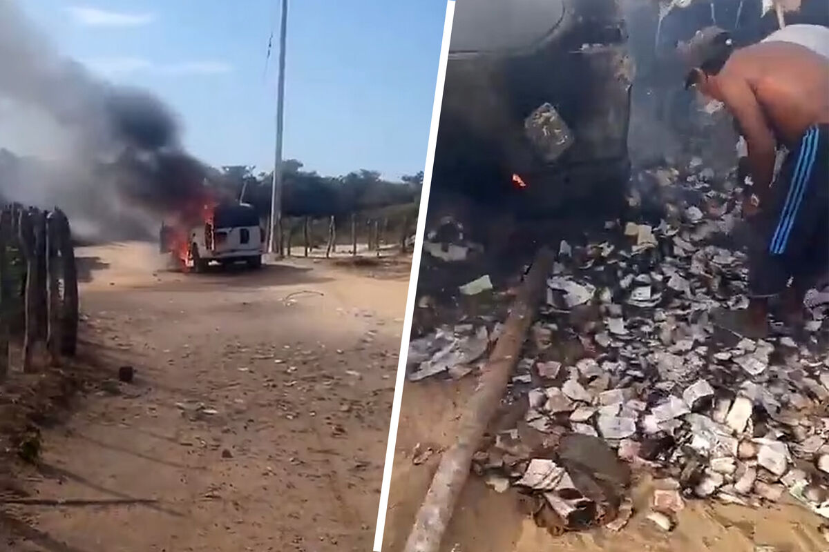 После этого в соцсетях начали распространяться кадры, как местные жители собирают уцелевшие банкноты из-под обгоревших остатков автомобиля. Властям пока удалось найти только четыре из похищенных сумок с деньгами и задержать двух подозреваемых. Точная сумма украденного не называется, но, по данным местных СМИ, речь может идти о миллионах долларов.
