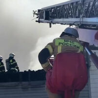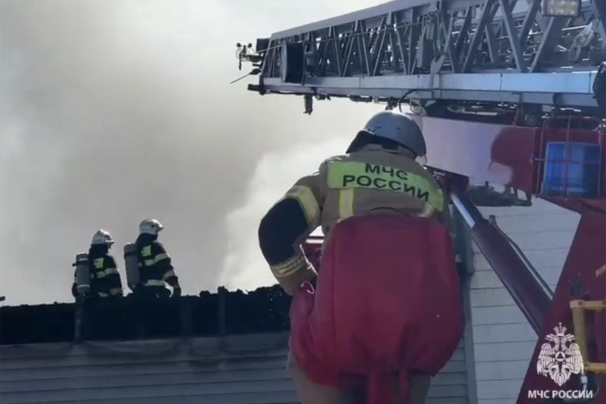 По данным ведомства, внутри горящего здания работают 10 звеньев газодымозащитной службы. Также к тушению привлекли вертолет, который уже сбросил порядка 10 тонн воды.