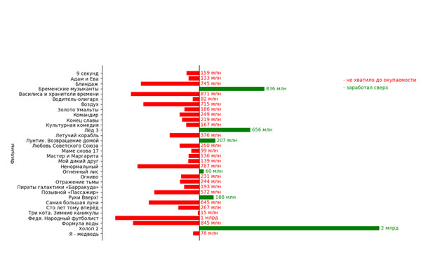 На другом полюсе оказалась картина «Федя. Народный футболист» — крупнейший провал года. Фильм не добрал до окупаемости более миллиарда рублей, став антирекордсменом по возврату вложений — доля государственного финансирования картины составила 125 млн рублей.