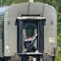 Ранее россиянину, отошедшему от поезда в туалет, пришлось ехать снаружи вагона.