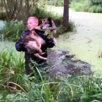 До этого сотрудники МЧС достали хаски из девятиметрового колодца в поселке Шаста в Калининградской области. Самостоятельно вызволить собаку из узкого бетонного сооружения хозяева не могли. Чтобы достать животное, понадобилась пожарная бригада. Огнеборцы опустили к собаке трехколенную лестницу, застраховали хаски спасательной петлей и вытащили.