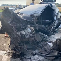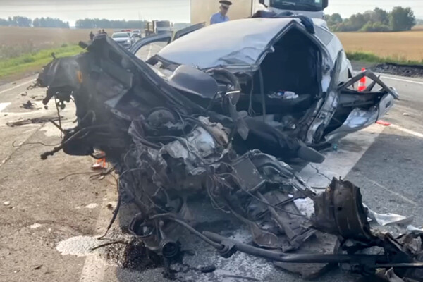 На кадрах с места заметно, что передняя часть машины первой участницы аварии полностью снесена, на проезжей части разбросаны детали. Получил ли повреждения грузовик, не уточняется.