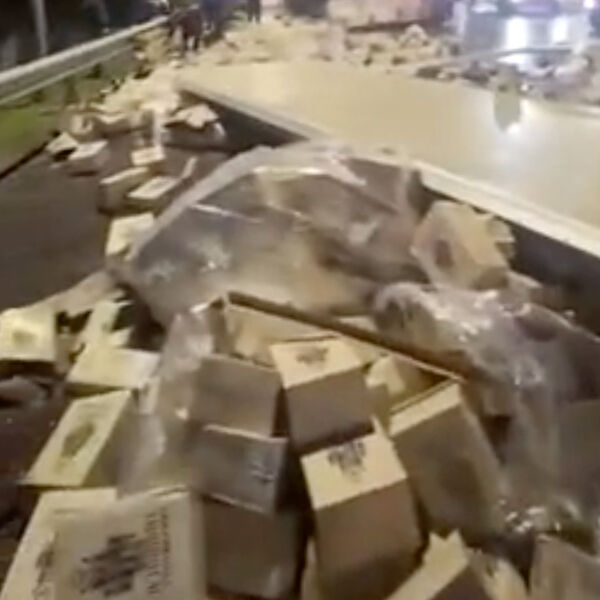 Местные власти призвали жителей не мародерствовать и оставить спиртное на месте. Экстренные службы работают на месте происшествия.