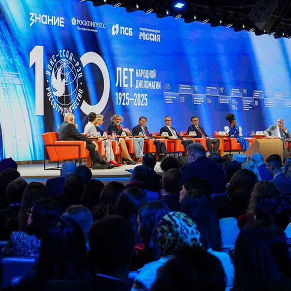 Сообщается, что приветственное обращение президента России Владимира Путина зачитал советник главы государства Валерий Фадеев. В нем отмечается, что ровно век назад было создано Всесоюзное общество культурной связи с заграницей — предшественник нынешнего Россотрудничества.