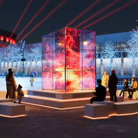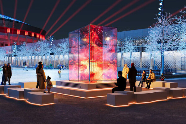 «Вдоль борта катка установим порядка 70 многофункциональных опор, на которых смонтируем светильники, прожекторы динамической архитектурно-художественной подсветки и динамики. Для прохода к четырем павильонам, которые попадают в зону катка, сделаем два лестничных мостика-перехода», — подчеркнул Бирюков.