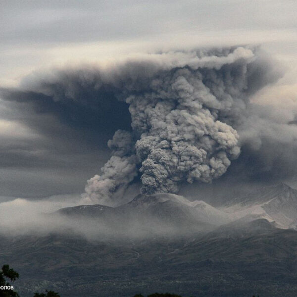 Над вулканом Шивелуч поднялся шлейф опасного пепла