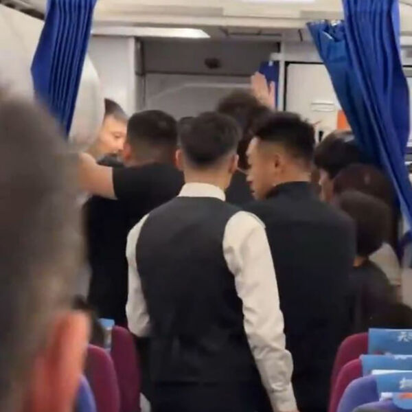 Инцидент произошел в понедельник, 10 ноября, в международном аэропорту Чэнду Шуанлю в китайской провинции Сычуань. На кадрах видно, что большинство пассажиров уже заняли свои места, а женщину у входа в салон пытаются успокоить стюардессы.