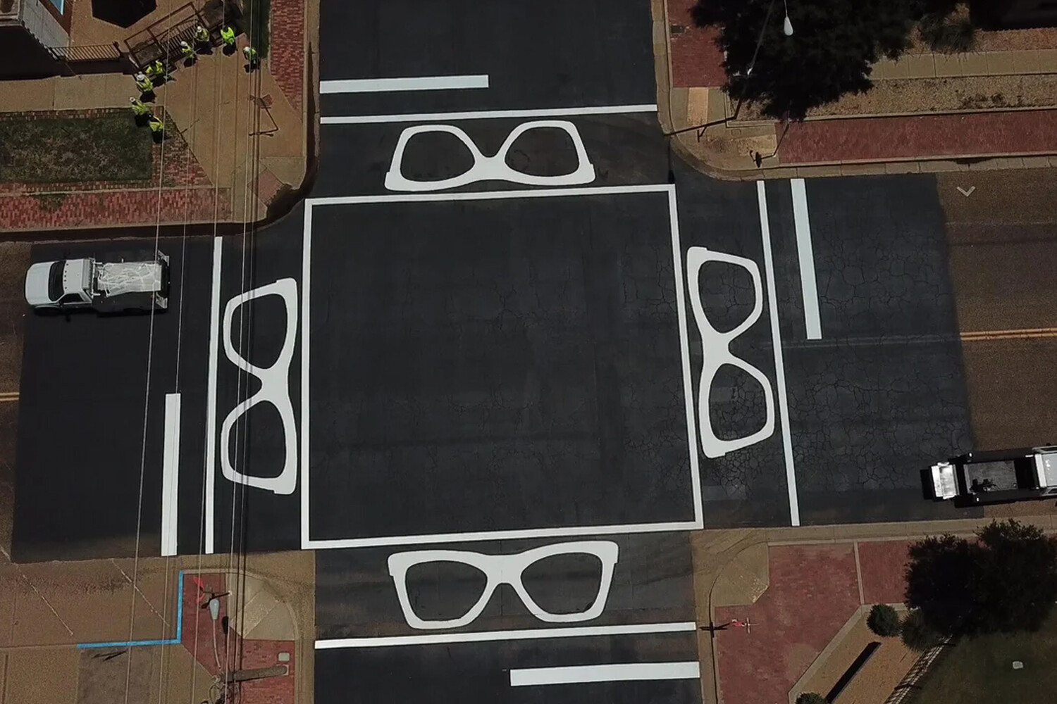 В частности, речь идет о разметке пешеходного перехода, выполненная с изображением очков в черной оправе, которые носил Бадди Холли, они стали частью его образа.