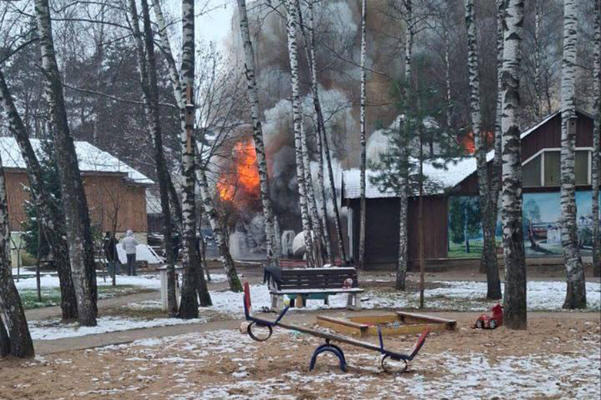 МЧС: площадь пожара на складе около церкви в Мытищах составляет 800 кв. м