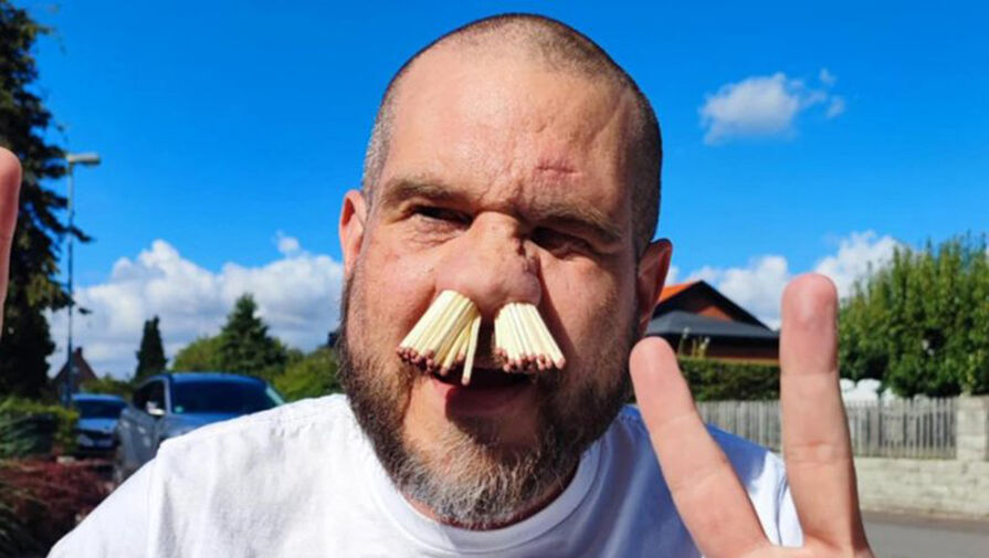 В результате упорных тренировок ему удалось установить новый рекорд, разместив в носу 81 спичку.
