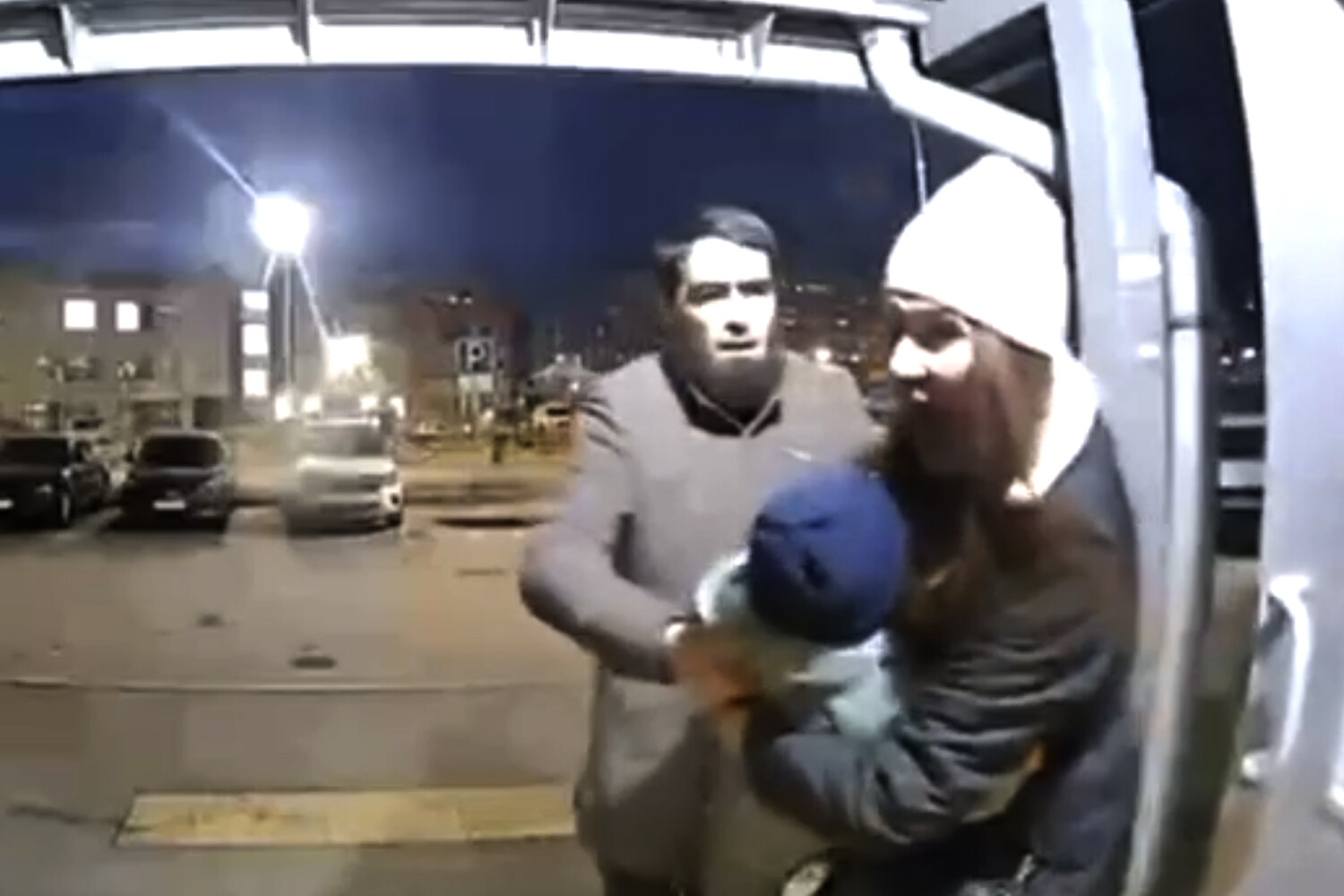 Мужчина пытался вырвать ребенка из рук матери и, судя по записи, напал на женщину еще в подъезде. Оказавшись на улице, она стала просить окружающих о помощи и спугнула напавшего.
