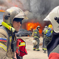 Всего на место происшествия прибыли 40 сотрудников экстренных служб и 10 единиц специальной техники. К текущему моменту огнеборцы спасли шесть транспортных средств, включая два электроавтомобиля, и эвакуировали шесть баллонов. Речь идет о трех кислородных, двух углекислотных и одном пропановом баллонах.