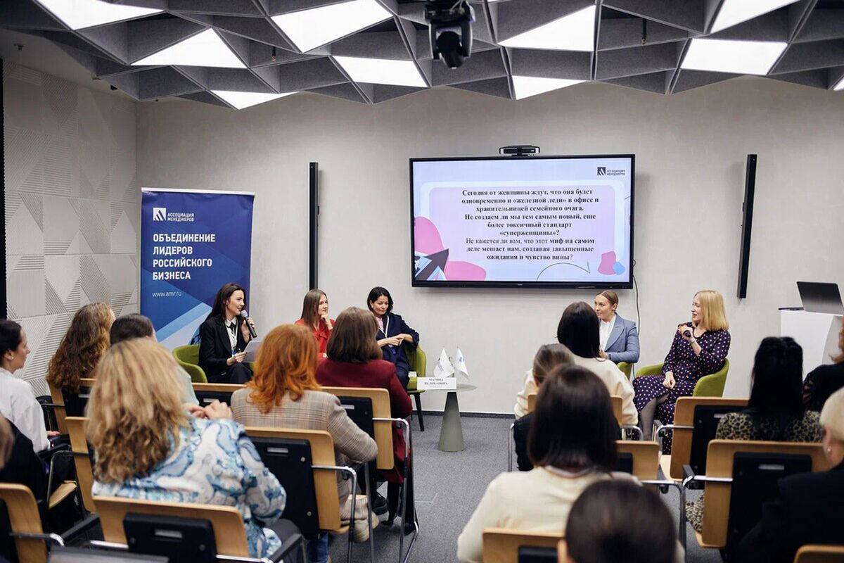 «До эпохи соцсетей и глянцевых СМИ для многих успешная женщина ассоциировалась с возможностью получить хорошее образование и построить карьеру. Сегодня же популяризируется стереотип, будто женщина, добившаяся успеха, — это «супервумен», способная одновременно управлять бизнесом, заботиться о семье и сохранять баланс. Такой образ создает перед женщинами серьезный вызов — справляться с высоким уровнем ожиданий и системой долженствования», — отметила модератор встречи, директор по коммуникациям Ассоциации менеджеров Светлана Баранова.