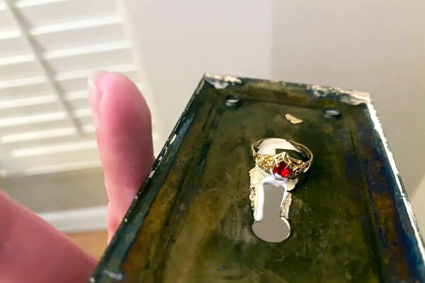 По ее словам, судя по количеству слоев краски, кольцо могло находиться внутри двери с 1920–1930-х годов. Внешне украшение напоминало золотое кольцо с рубином или гранатом, что породило предположения о намеренном тайнике или случайной детской шалости.