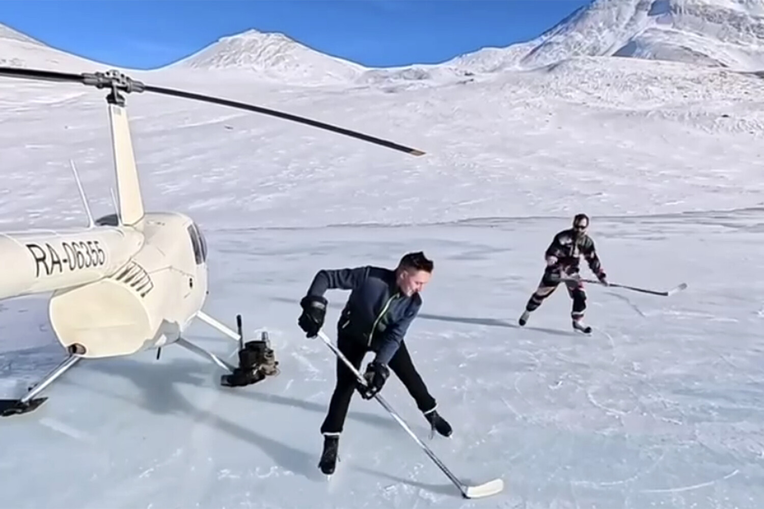 «Они приземлились туда прямо на вертолете и погоняли шайбу. Вадим радостно поделился с подписчиками тем, что игра состоялась на высоте 2500 метров», — сказано в посте.