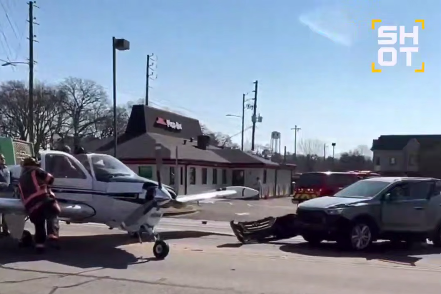 В США самолет протаранил автомобили во время аварийной посадки на оживленную дорогу