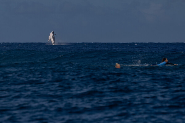 Кит засветился в эффектном прыжке на соревнованиях по серфингу.