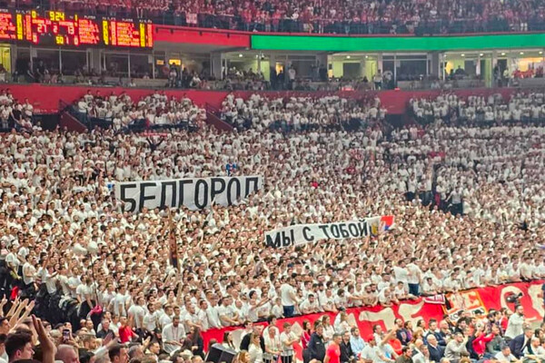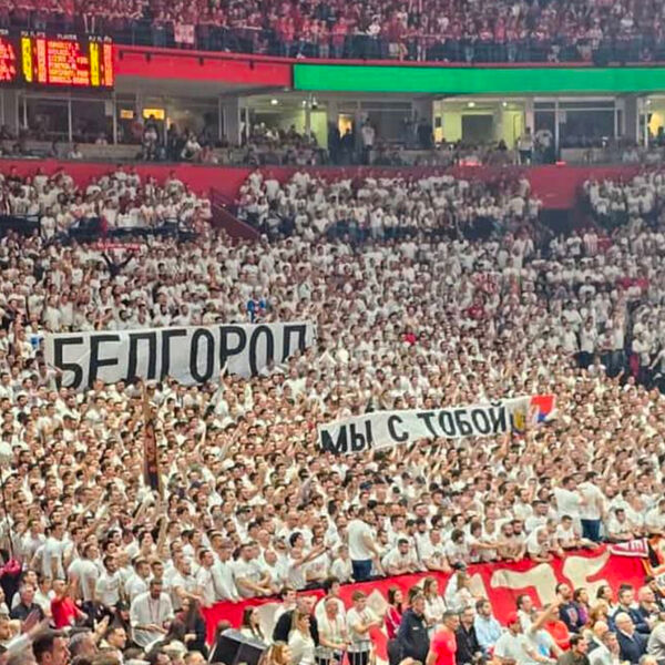 На матче между сербскими баскетбольными клубами «Црвена Звезда» и «Партизан» в Евролиге болельщики вывесили баннер в поддержку жителей Белгорода.