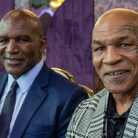 Американский боксер Майк Тайсон в социальных сетях выложил фотографию со встречи с Эвандером Холифилдом.