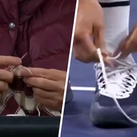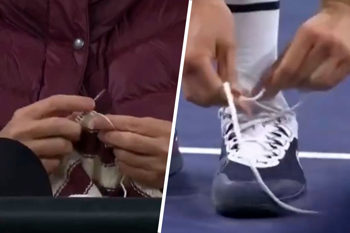 Во время третьего сета Медведев начал завязывать шнурки. В этот момент оператор переключился на одного из зрителей, который вязал спицами, сидя на трибунах. Далее оператор снова вернулся к завязывающему шнурки Медведеву, а после — к вяжущему зрителю. Так продолжалось несколько раз.