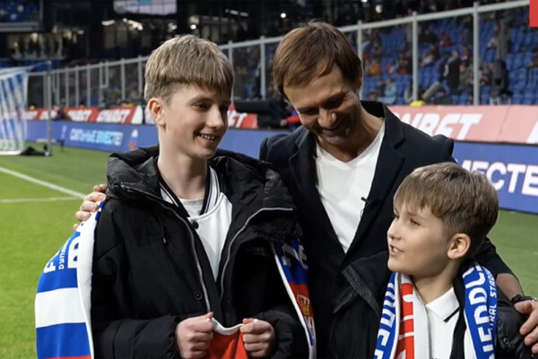 Вадиму и его младшему брату предложили выйти на стадион, где футболисты Дмитрий Сычев и Федор Кудряшов вручили ребятам два комплекта именной формы сборной России с автографами спортсменов.