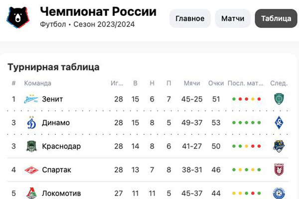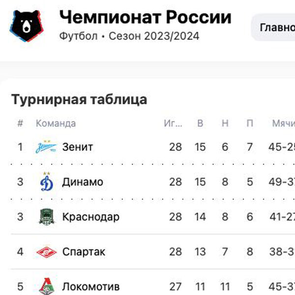 При этом в действительности лидером РПЛ является московское «Динамо», которое опережает оппонентов на два балла. Таким образом, поисковая система ошибочно выдает бело-голубым вторую строчку в турнирной таблице.
