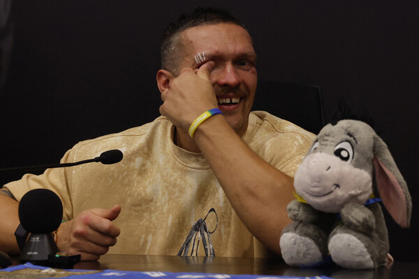 Абсолютный чемпион мира по боксу в супертяжелом весе украинец Александр Усик вышел на победный поединок с британцем Тайсоном Фьюри с игрушкой-талисманом в виде ослика Иа, которую подарила ему его дочь, передает «Чемпионат».