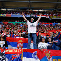 На видеозаписи, которую опубликовало издание, можно увидеть толпу сербских фанатов, повторяющих имя и фамилию главы государства. Кроме того, один из болельщиков развернул российский флаг.