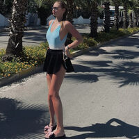 23-летняя спортсменка выложила фотографию в черной мини-юбке и голубом топе.