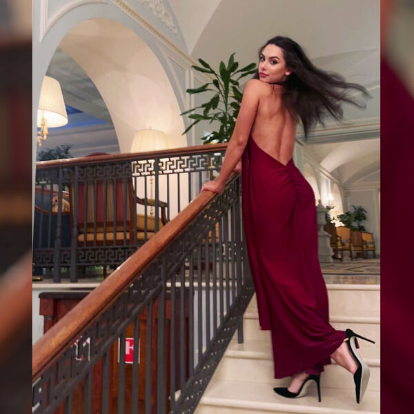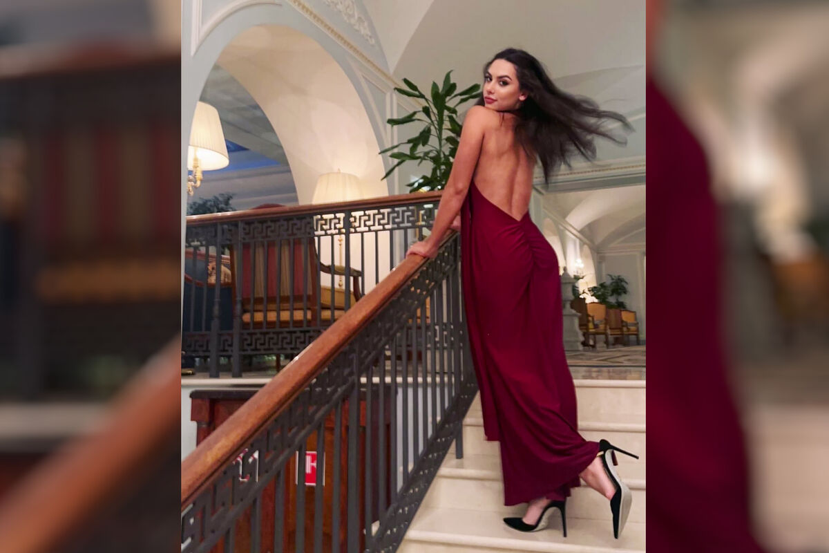 На снимке спортсменка позирует в платье длинной в пол, которое полностью обнажает ее спину.
