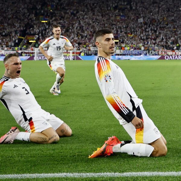 Германия на групповом этапе одержала победы над Шотландией (5:1) и Венгрией (2:0), а также сыграла вничью со Швейцарией (1:1). В первом матче плей-офф страна-хозяйка турнира одолела Данию — 2:0.