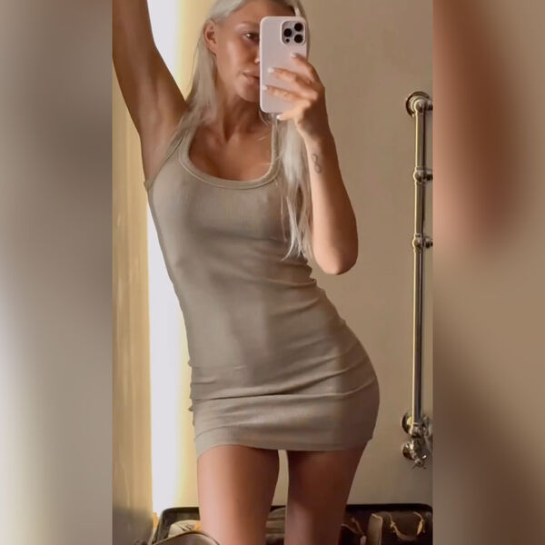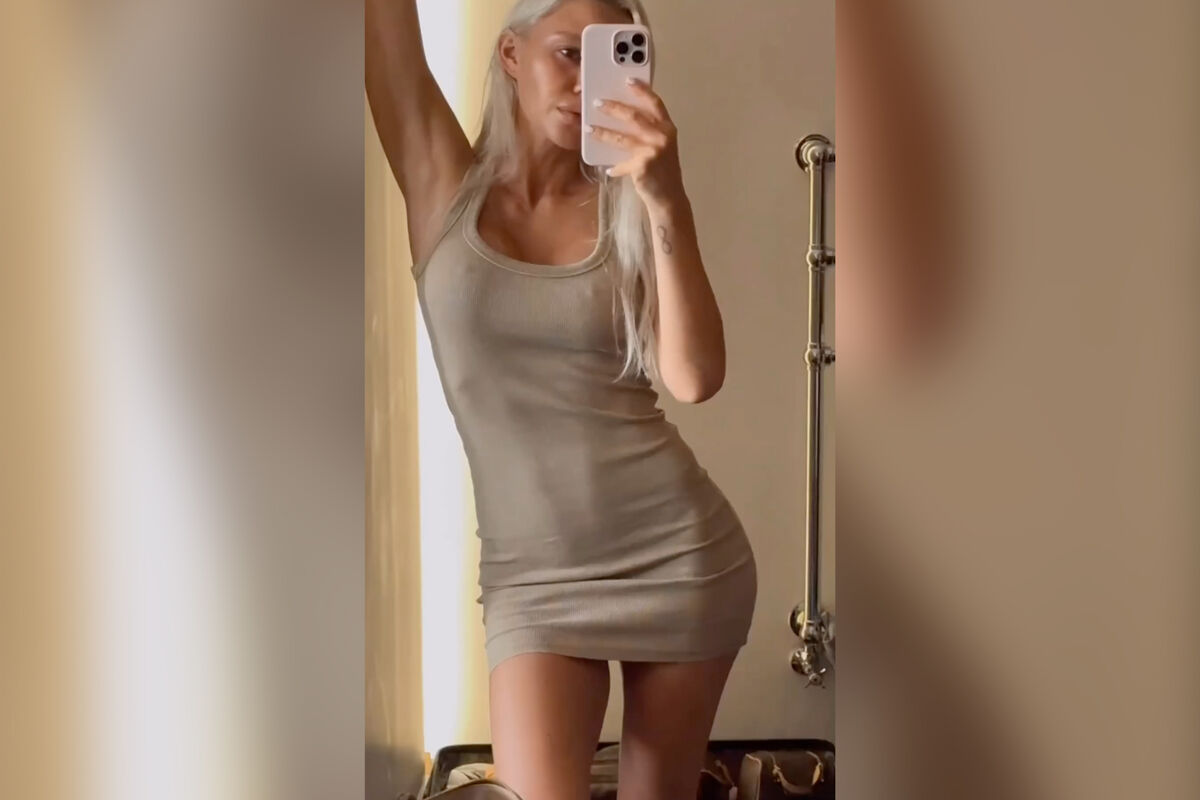 На кадрах Валитова позирует в обтягивающем платье без бюстгальтера.