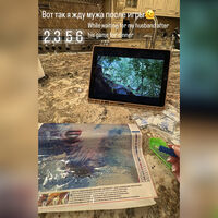 На снимке она собирает алмазную мозаику и смотрит фильм «Аватар» на планшете.