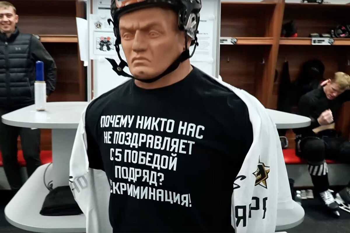 В ролике показана раздевалка команды. Нападающий команды Александр Кадейкин подошел к манекену и расстегнул на нем кофту, под которой была футболка с надписью: «Почему никто нас не поздравляет с пятой победой подряд? Дискриминация».