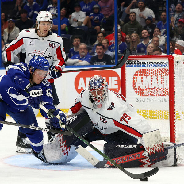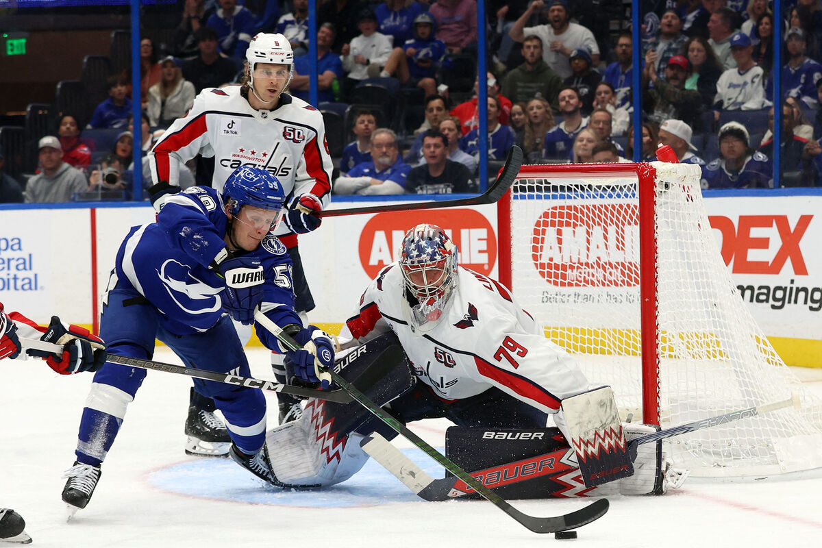 Голкипер «Вашингтон Кэпиталз» Чарли Линдгрен забросил шайбу в собственные ворота в матче регулярного чемпионата Национальной хоккейной лиги (НХЛ) против «Тампы».
