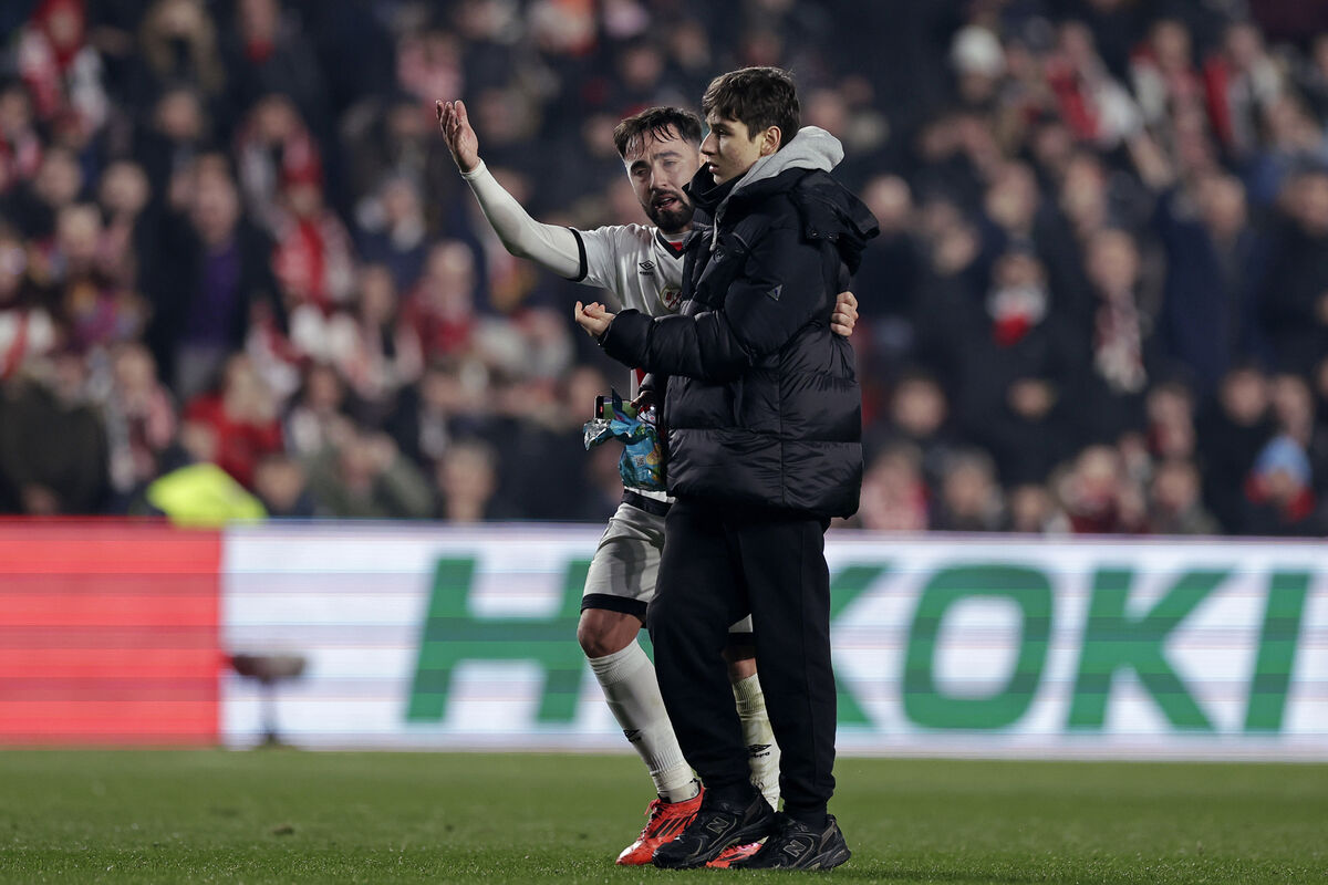 Во время забега по футбольному полю болельщик снимал себя на телефон. Стюарды быстро увели нарушителя порядка с поля, дав продолжить игру, которая завершилась со счетом 3:3.