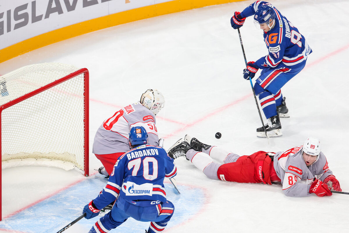 В очередном матче регулярного чемпионата Континентальной хоккейной лиги (КХЛ) московский «Спартак» разгромил петербургский СКА.