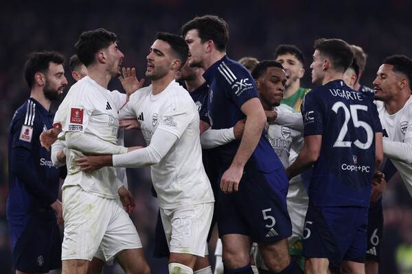 Защитник «Манчестер Юнайтед» Харри Магуайр вступил в перепалку с форвардом «Арсенала» Кайем Хаверцем по ходу матча третьего раунда Кубка Англии (1:1, 5:3 пен).