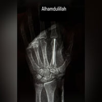 На рентгеновском снимке можно увидеть, что Нурмагомедову вставили штифт в кисть левой руки. Боец получил перелом руки по ходу первого раунда поединка.